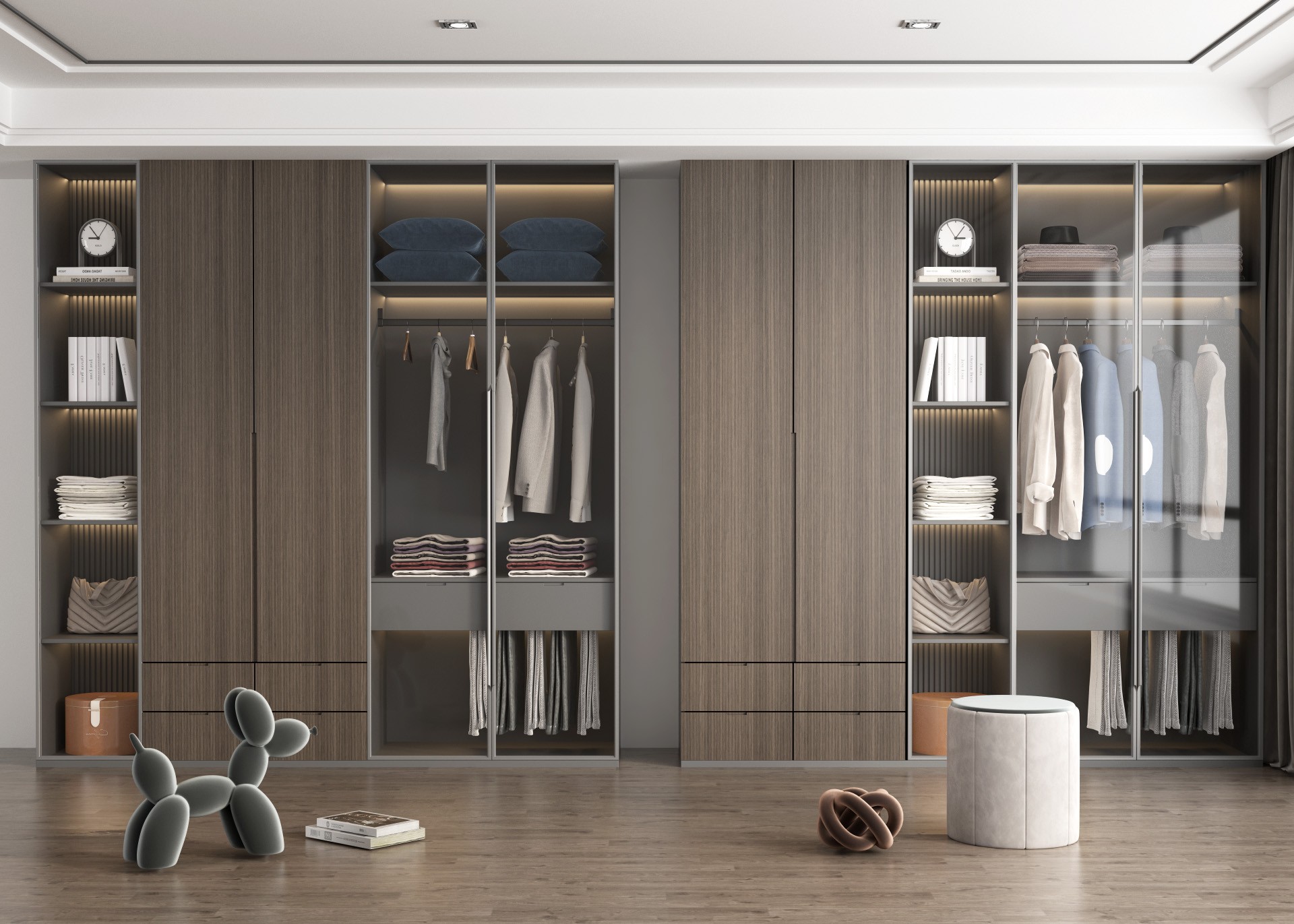 Choose from sophisticated matte lacquer finishes or timeless wood textures to match any interior style. Enhance your wardrobe with optional motion-sensor LED lighting, providing effortless visibility during nighttime use.