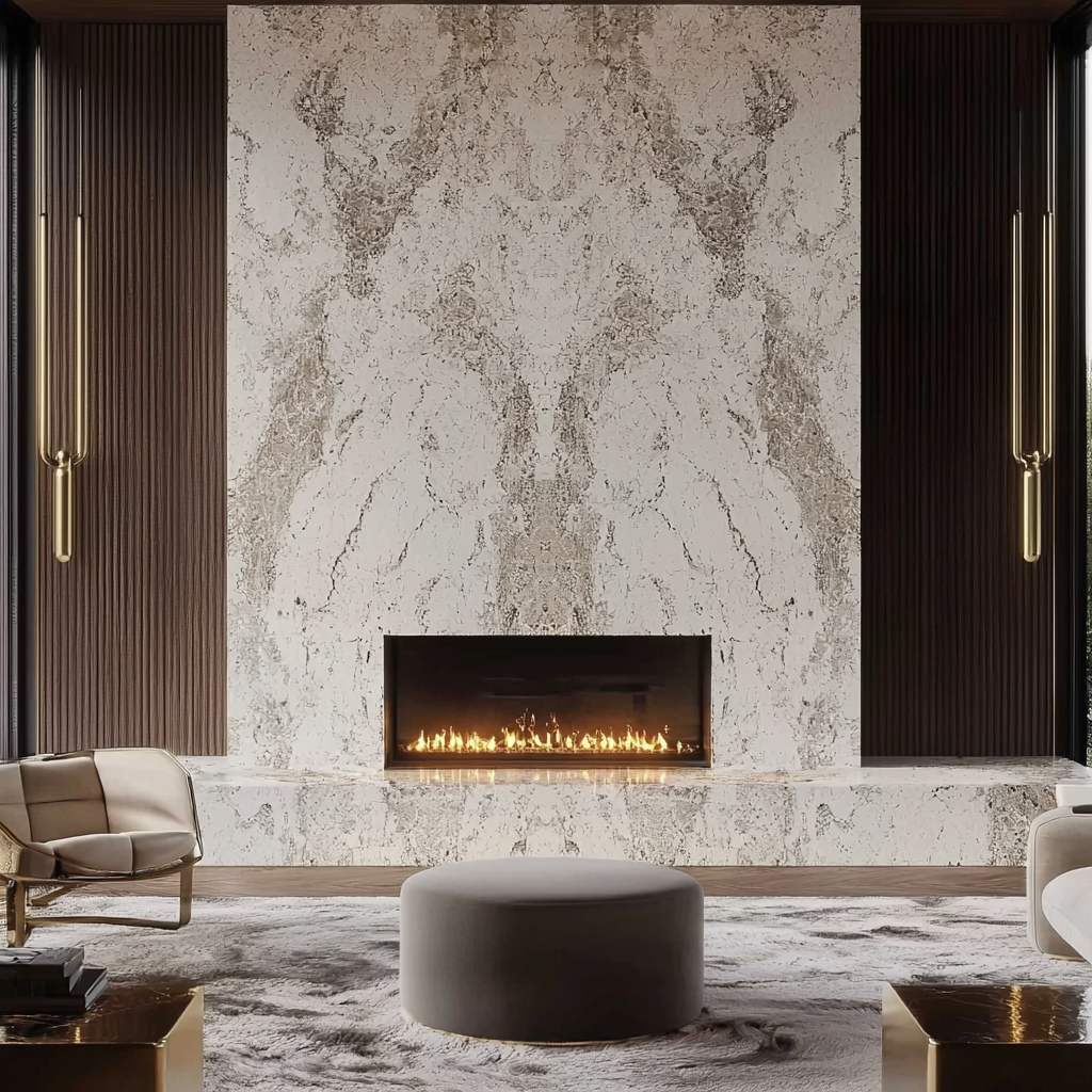 Crafted from solid natural granite, this fireplace combines rugged durability with refined aesthetics. Resistant to high temperatures and scratches, its speckled or crystalline patterns add earthy elegance to living rooms or outdoor patios. Customizable in finishes like Absolute Black or Baltic Brown for rustic or modern settings.
