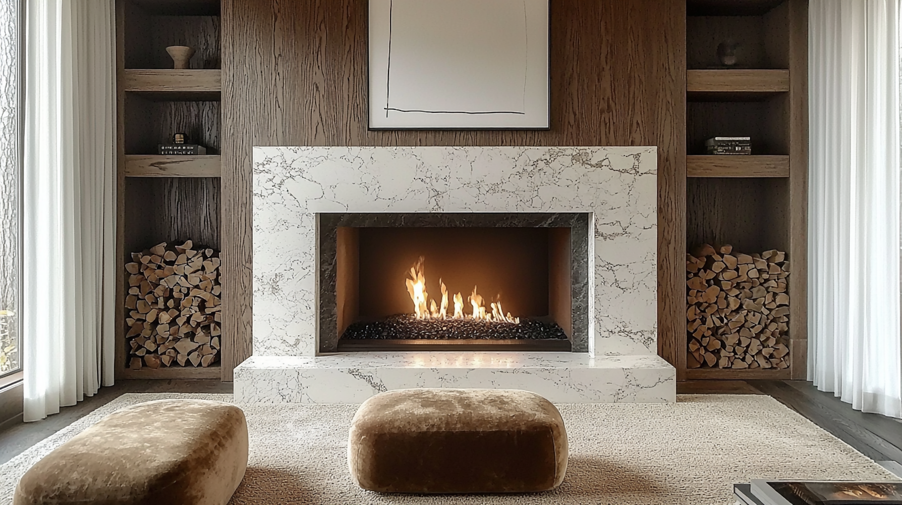 Elegant Natural Stone Marble Fireplace – Timeless Warmth & Style