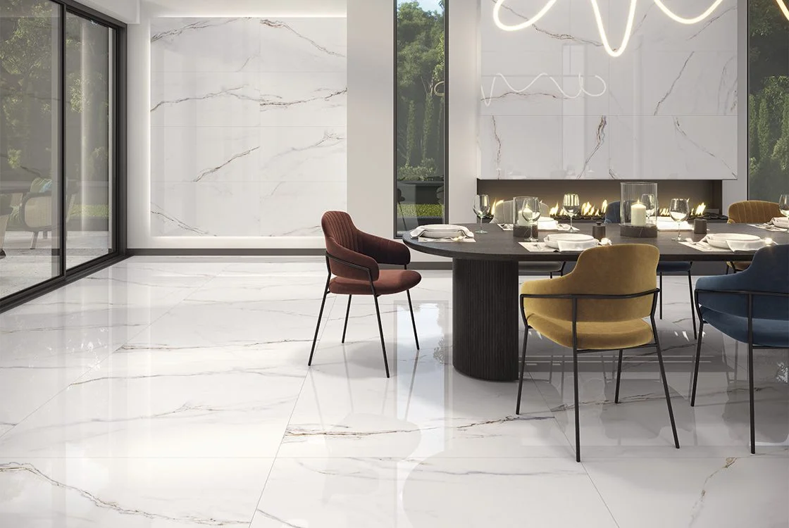 Enhance your interiors with luxurious marble flooring tiles that deliver exceptional durability and a high-gloss, reflective surface. Designed for high-traffic environments such as homes, lobbies, and boutique stores, these tiles resist scratches and everyday wear while elevating the space’s elegance. Choose from timeless veining or contemporary geometric patterns to perfectly complement any décor style.