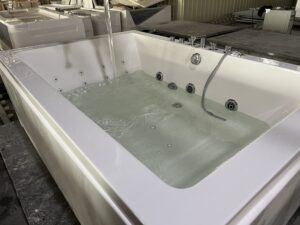 Hydrotherapy systems with 14-18 adjustable air/water jets, ozone purification, and built-in Chromotherapy LED lighting. Insulated ABS shells reduce heat loss, and textured floors prevent slipping. Operates on 15A circuits with 1700W energy-efficient pumps. Includes Bluetooth speakers and touchscreen controls.